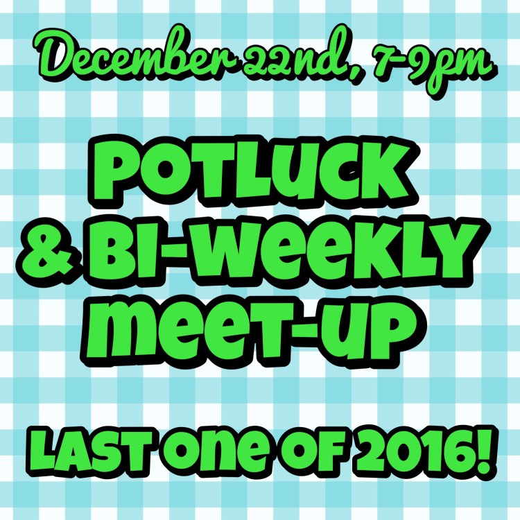 Our last meet-up of 2016 will happen on December 22 from 7-9pm in the Vitruvian Space of the University of Calgary’s Dining Centre.
